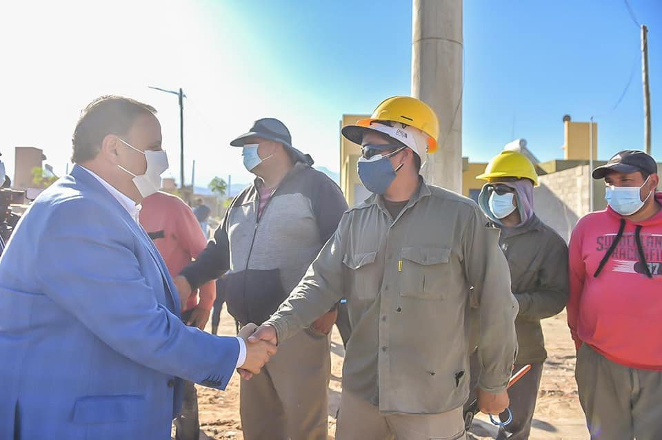 El gobernador Ricardo Quintela visitó este miércoles las obras de viviendas que se construyen en el barrio Los Altos de la ciudad de Chilecito.
