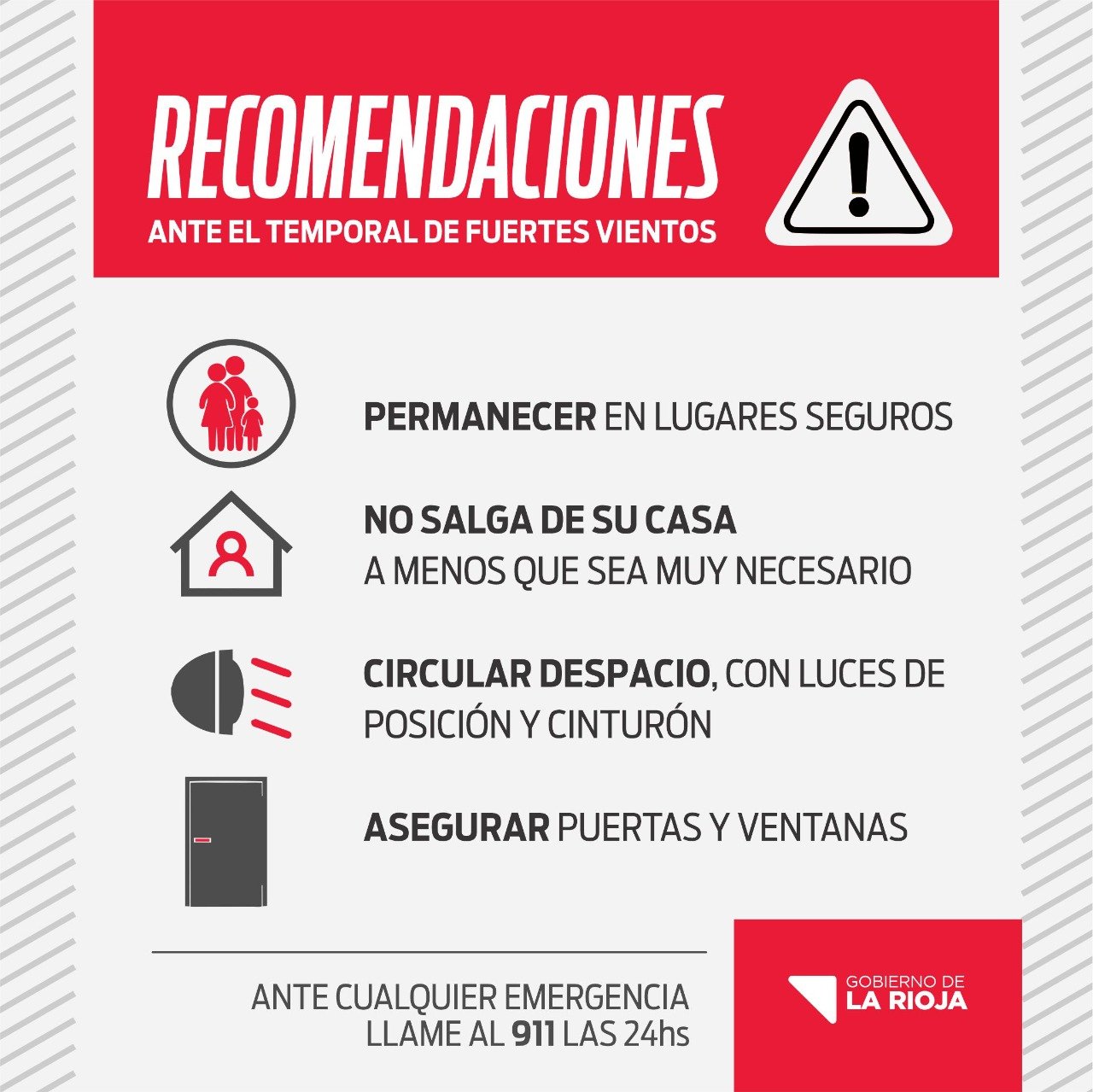 RECOMENDACIONES ANTE EL TEMPORAL DE FUERTES VIENTOS Federico conteras 7 septiembre, 2021 Permanecer en lugares seguros No salga de su casa a menos que sea muy necesario Circular despacio, con luces de posición y cinturón Asegurar puertas y ventanas COMPARTIR & PUBLICAR