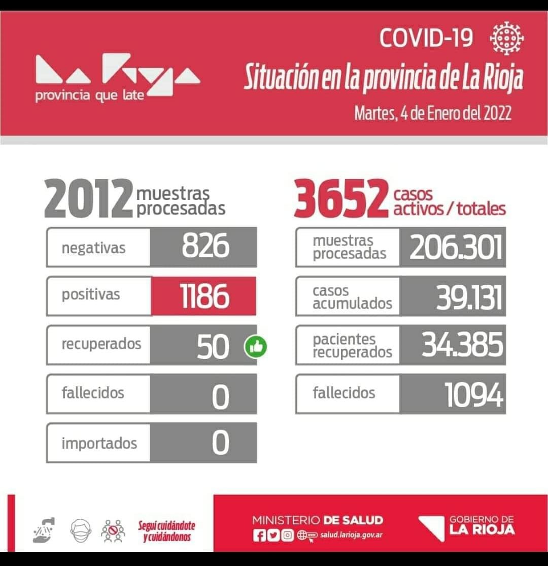 Desde el Ministerio de Salud dieron a conocer la situación epidemiológica en la que se encuentra la Provincia hoy Martes 04 de Enero.