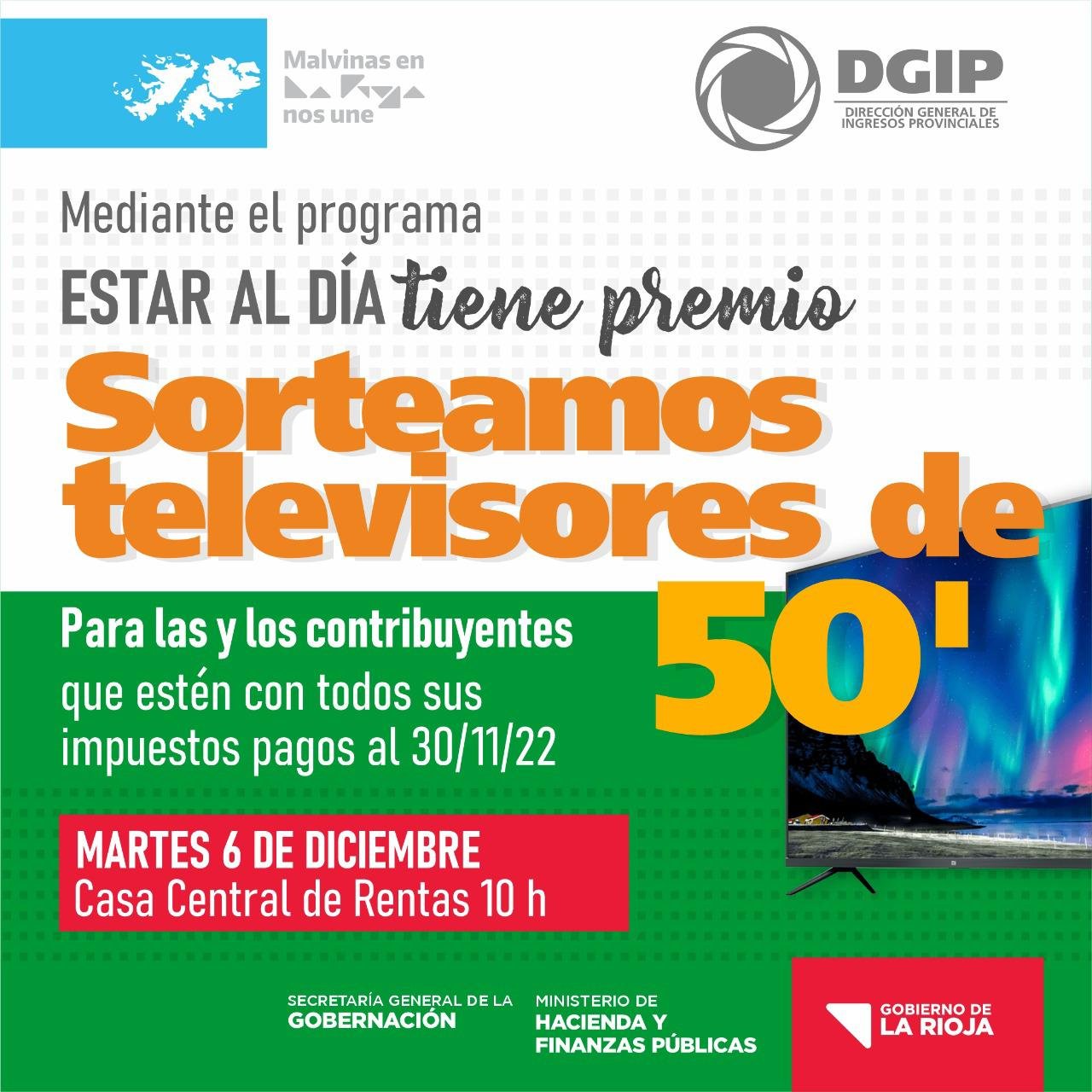 El Ministerio de Hacienda y Finanzas Públicas junto a la Secretaría General de la Gobernación, por medio del Programa “Estar al día tiene premio» comunican que se llevará a cabo un nuevo sorteo de televisores Smart de 55¨
