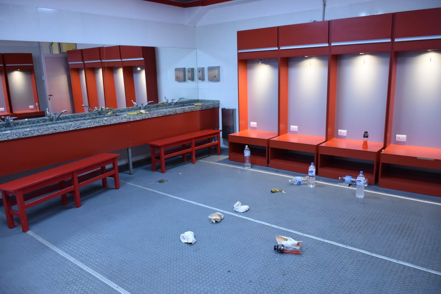 “ASÍ SE DESPIDE @AAQUIMSAEL PUNTERO DE LA @LIGANACIONAL DEL SÚPERDOMO DE LA RIOJA, SEÑORES LAS INSTALACIONES SE CUIDAN Y SE VALORAN COMO TAL, LOS FELICITO POR EL TRIUNFO, PERO POR ESTOS DAÑOS Y MUGRE MI TOTAL REPUDIO A TODOS”.