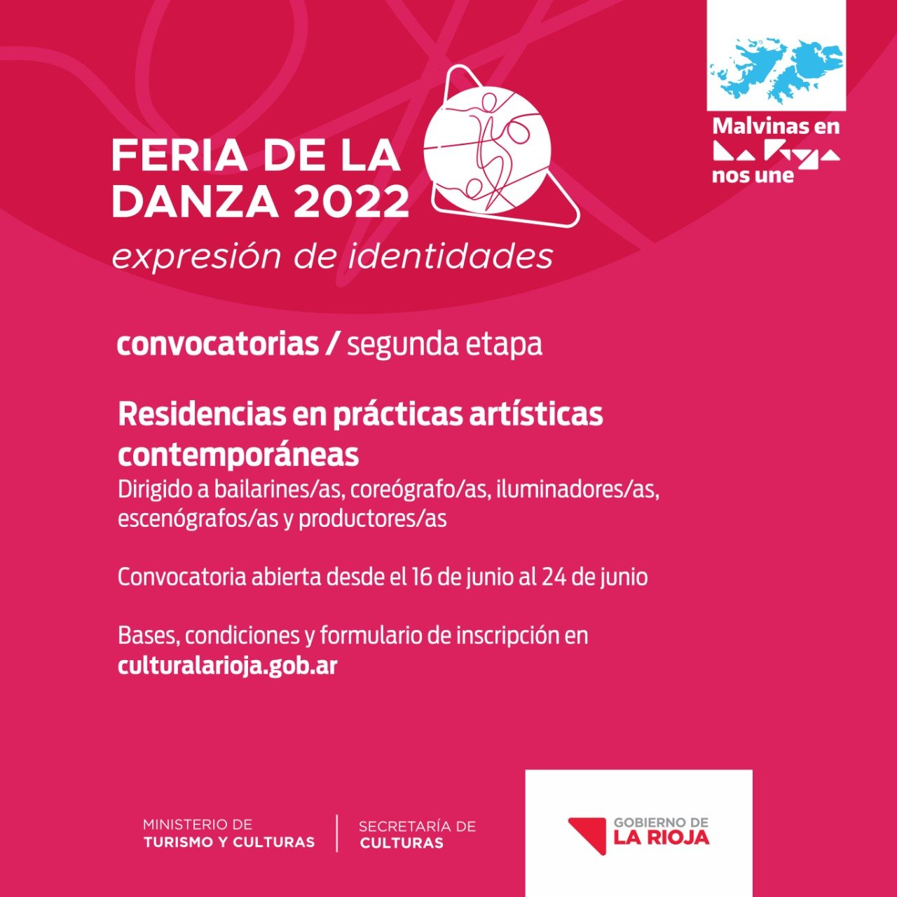 El Gobierno de La Rioja, a través de la Secretaría de Culturas, invita a participar de la convocatoria para la segunda etapa de las Residencias en Prácticas Artísticas Contemporáneas, enmarcadas dentro de Feria de la Danza | Expresión de Identidades – 2022