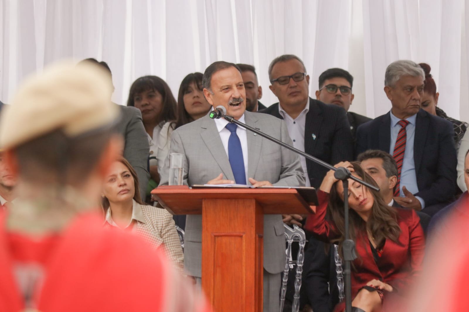 Luego de la invocación religiosa a cargo del padre Mauricio Giménez, el gobernador brindó su discurso a todos los riojanos presentes y a aquellos que lo seguían por los medios públicos, expresando que “La Rioja es sinónimo de lucha, de fe, de esperanza. Es sinónimo de historia, de federalismo, de hombres y mujeres que entregaron todo por su tierra y el país, de ese Tinkunaco que no solo celebramos cada 31 de diciembre, sino también del que se manifiesta espontáneamente a diario desde la solidaridad y el amor fraterno, así como en el compromiso y esfuerzo con el que cada uno y cada una contribuye para poner de pie este bendito suelo de sangre indígena”.
