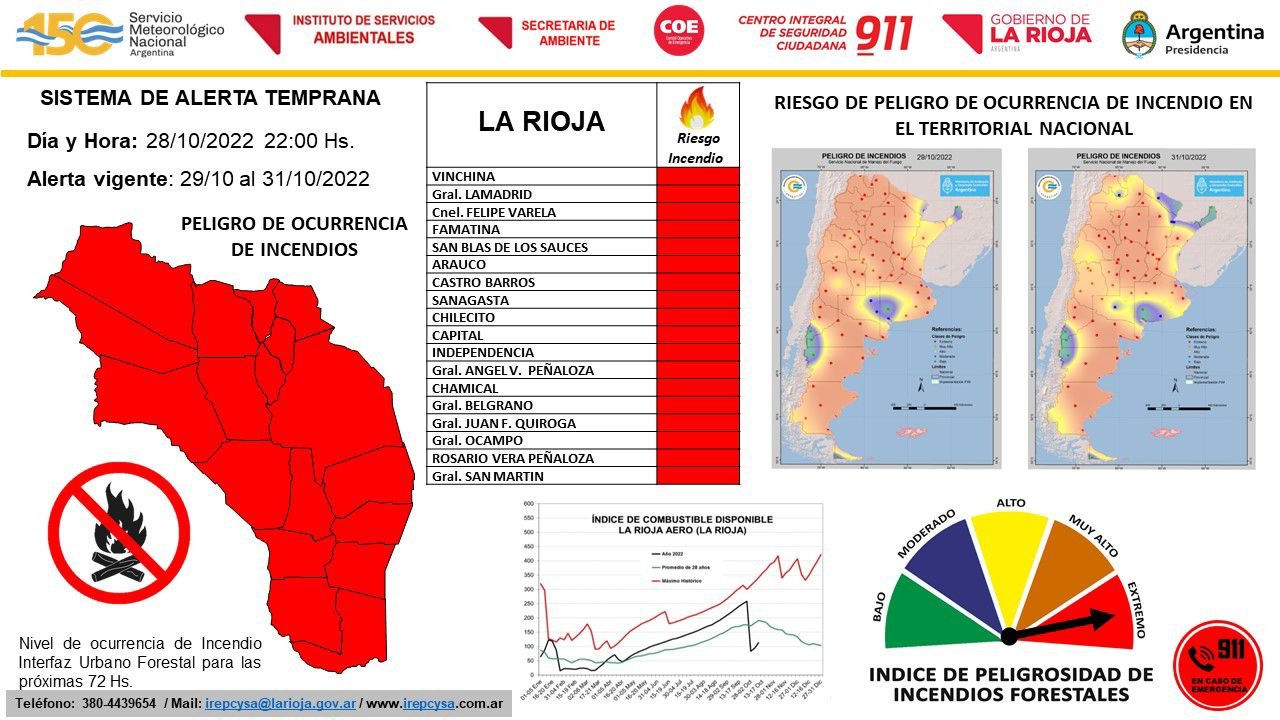 El Ministerio de Seguridad, Justicia y Derechos Humanos, informa que debido a las altas temperaturas registradas en nuestro territorio, está vigente el Alerta de Peligro Extremo de Incendios Forestales durante 72 horas, por lo que se solicita a la población tomar las precauciones correspondientes, evitando realizar cualquier tipo de foco ígneo en zonas de pastizales, sitios descampados, campo abierto o montaña.