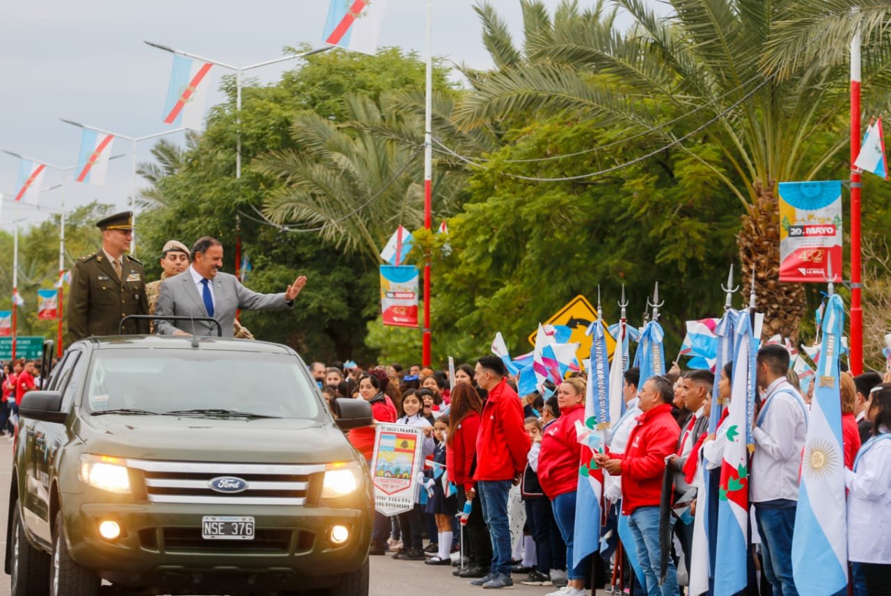 Al final del discurso del mandatario se procedió a dar inicio al desfile en el que participaron más 2.500 estudiantes de 71 escuelas de Nivel Primario y de Modalidad Especial, miembros del programa Manzanas Saludables, COE, Forestar, Parque de la Familia, Parque de Juventudes, Parque Norte «General Felipe Varela», Parque Las Talas, Reserva Natural Urbana Takú, Parque El Saladillo, Paseo Los Sauces, Parque Acuático.