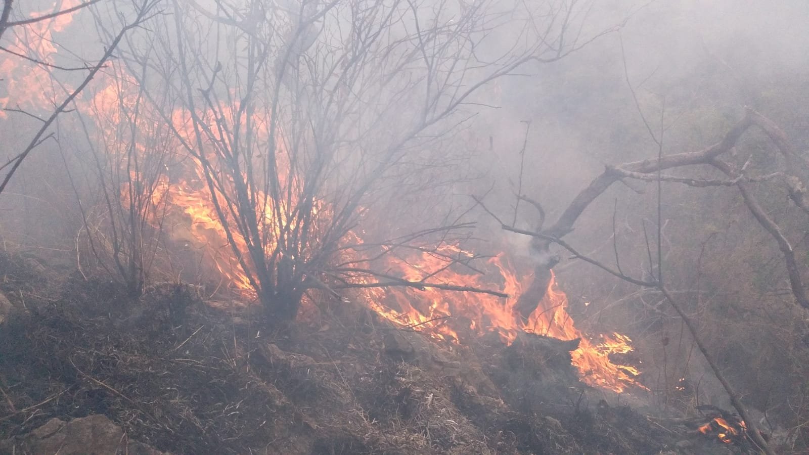 El peligro radica en la proximidad del fuego en el Cerro de la Cruz a las líneas de Alta Tensión.