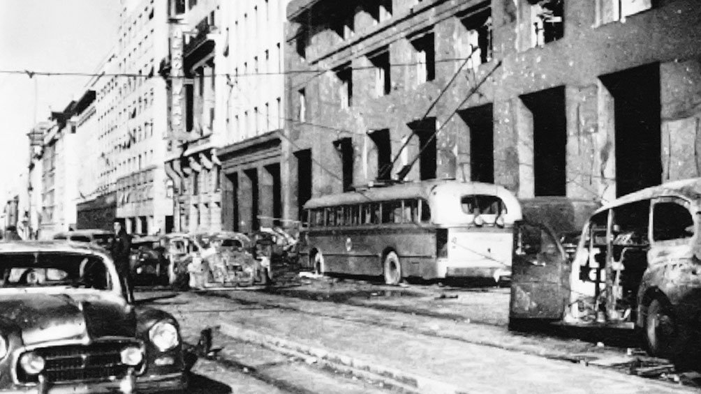 La Aviación Naval y parte de la Fuerza Aérea se sublevaban hace 66 años contra el Gobierno constitucional de Juan Domingo Perón y bombardeaban la Plaza de Mayo, al dejar caer cerca de 14 toneladas de bombas que dejaron más de 350 muertos y 2.000 heridos.