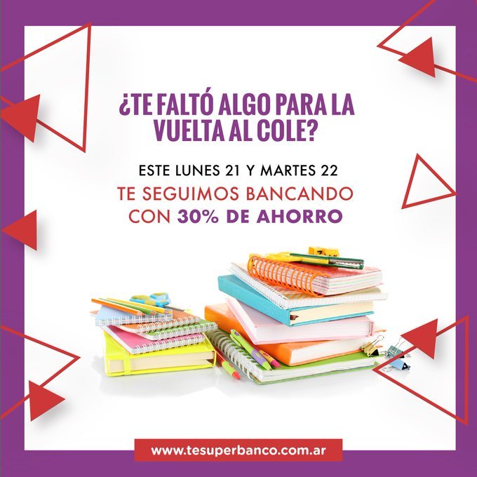 Este lunes 21 y martes 22 de marzo, Banco Rioja sigue con el “TE SUPER BANCO – VUELTA A CLASES”! Una medida impuesta por el gobierno provincial para potenciar las ventas de los comercios riojanos y permitir el ahorro de la familia.