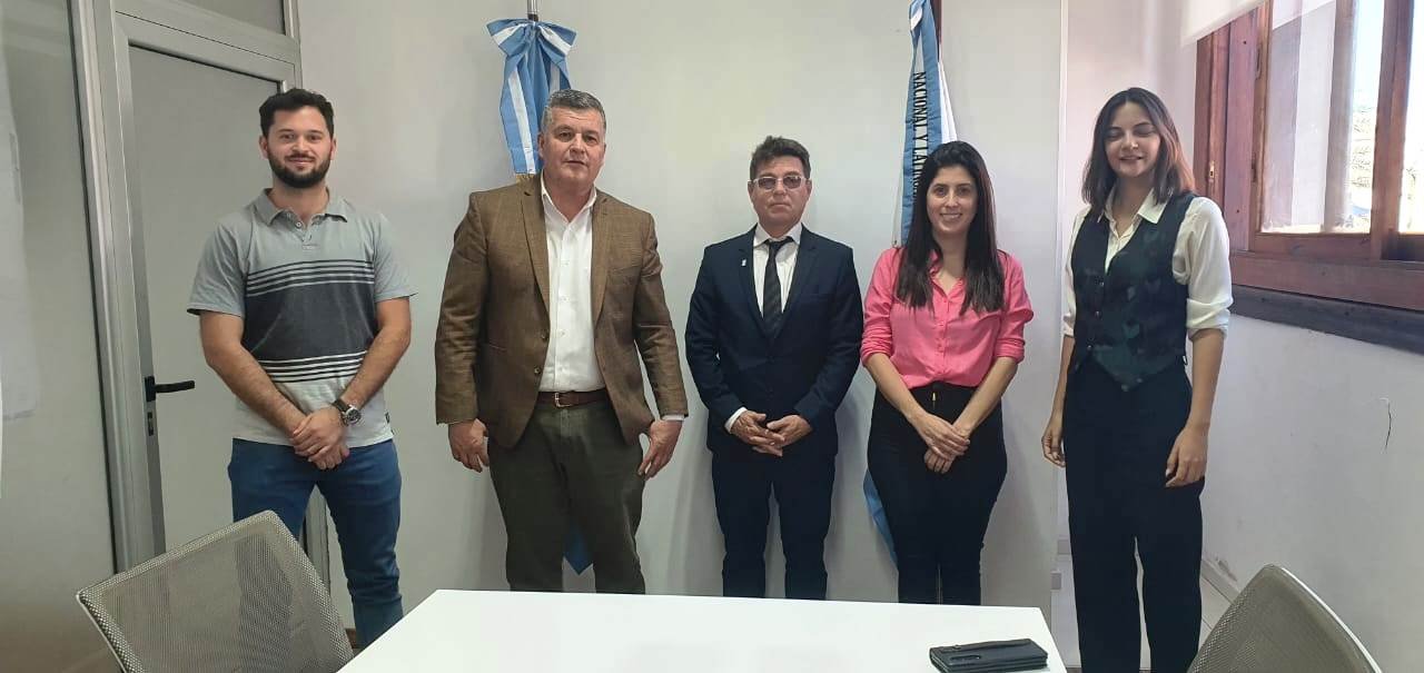 Gustavo Luna, acompañado por el subsecretario de Juventudes Ignacio Armagnague, dialogó con Ayelén Ebele y Martín Bueno (Fábrica Argentina de Nanosensores OIT) y Ana Paula Seppi, directora de Políticas Industriales del Ministerio de Trabajo, Empleo e Industria, quienes informaron sobre el avance del proyecto Solar 54 en el departamento Independencia.