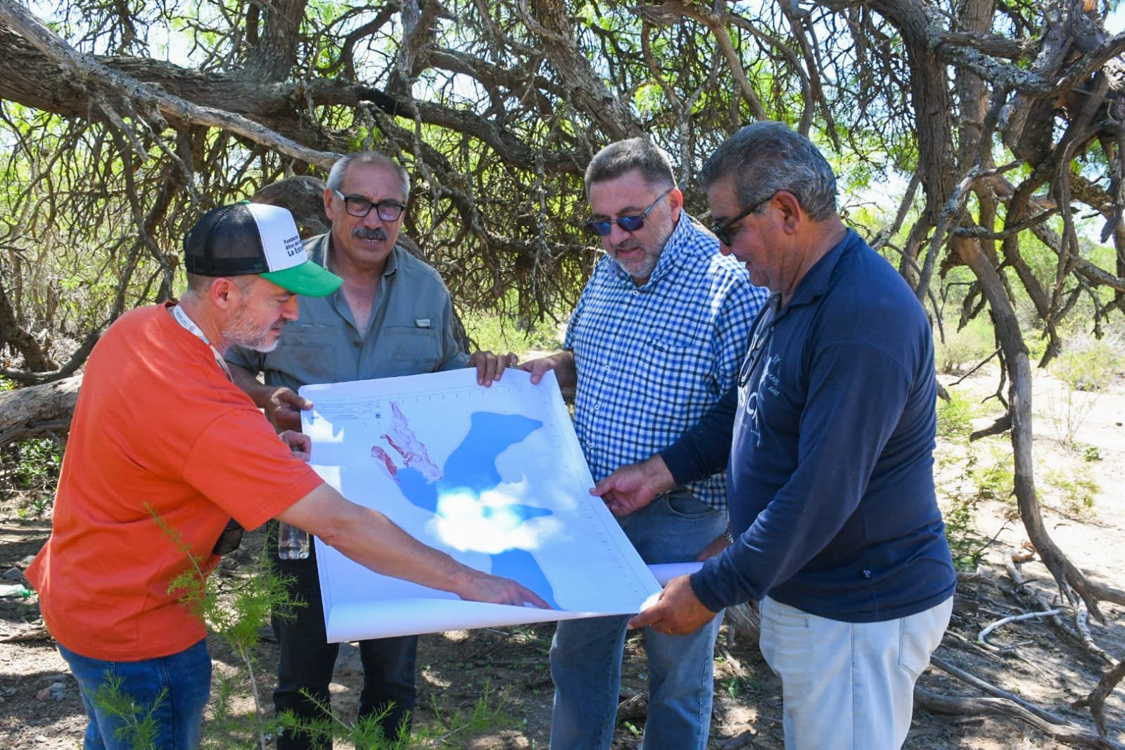La visita estuvo encabezada por el ministro de Agua y Energia, Adolfo Scaglioni, acompañado por el Secretario de Agua, Edgardo Karam, el intendente departamental, Daniel Gallardo, y el encargado del proyecto técnico.