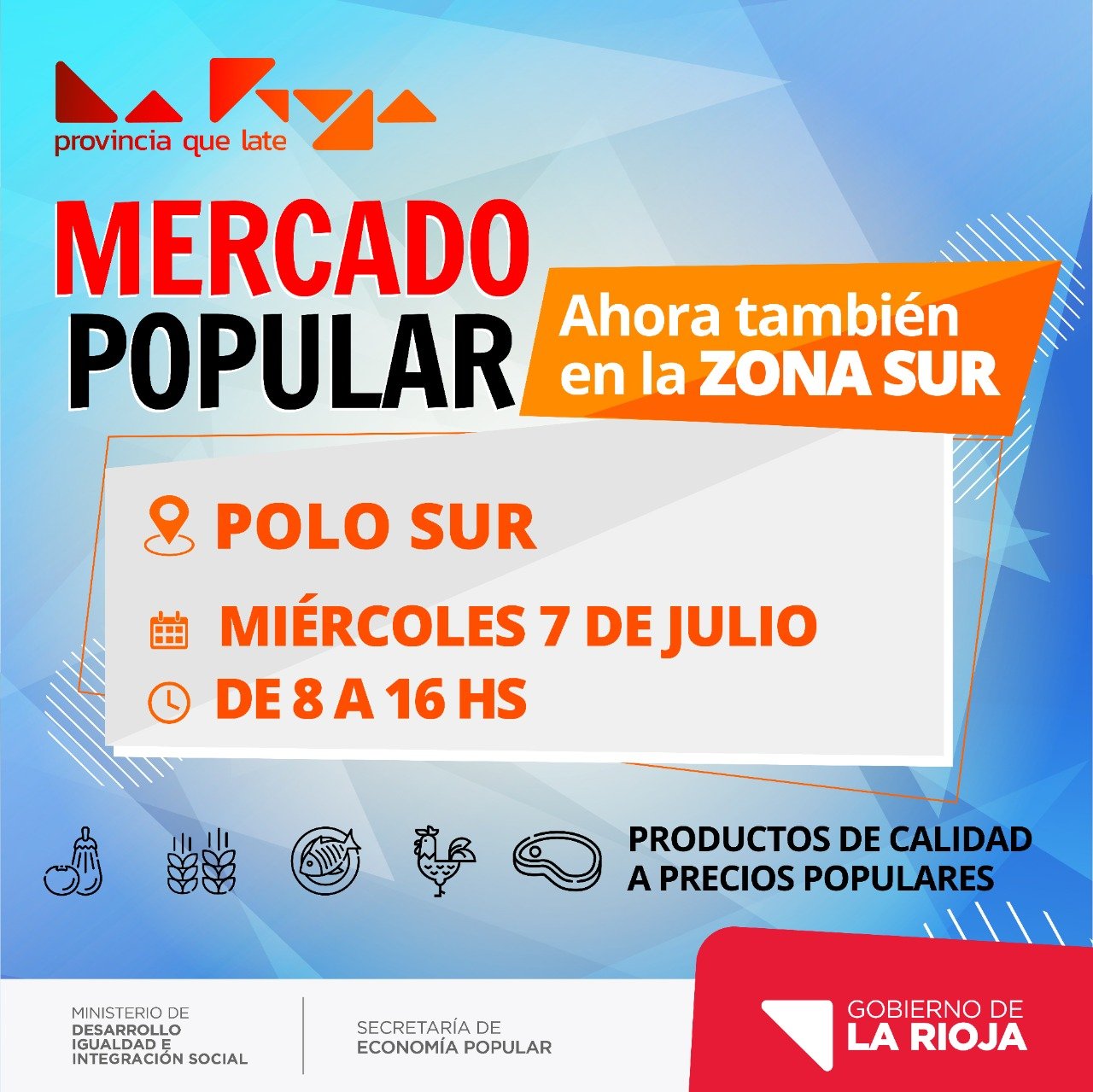 El Ministerio de Desarrollo a través de la Secretaría de Economía Popular informó que este miércoles en el Polo Sur, barrio Urbano 36, esquina Los Colorados y Raquel Tejada, y el jueves en el paseo Evita, barrio 3 de febrero, se concretará una nueva edición del Mercado Popular.
