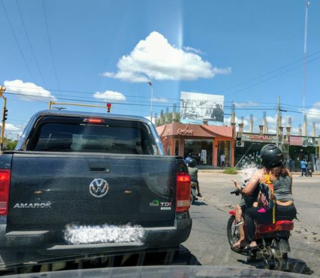 Este hombre no solo paso el semáforo en rojo en varias oportunidades, sino que lleva consigo en su pierna a un bebe, sosteniéndolo con una mano y con la otra maneja el volante. Esto no es solo una imprudencia de la gente sino que no hay control por parte del Municipio en las calles ni Avenidas, implementando las multas correspondientes por no cumplir lo estipulado por la Ley con respecto a la circulación en vehiculo o moto.